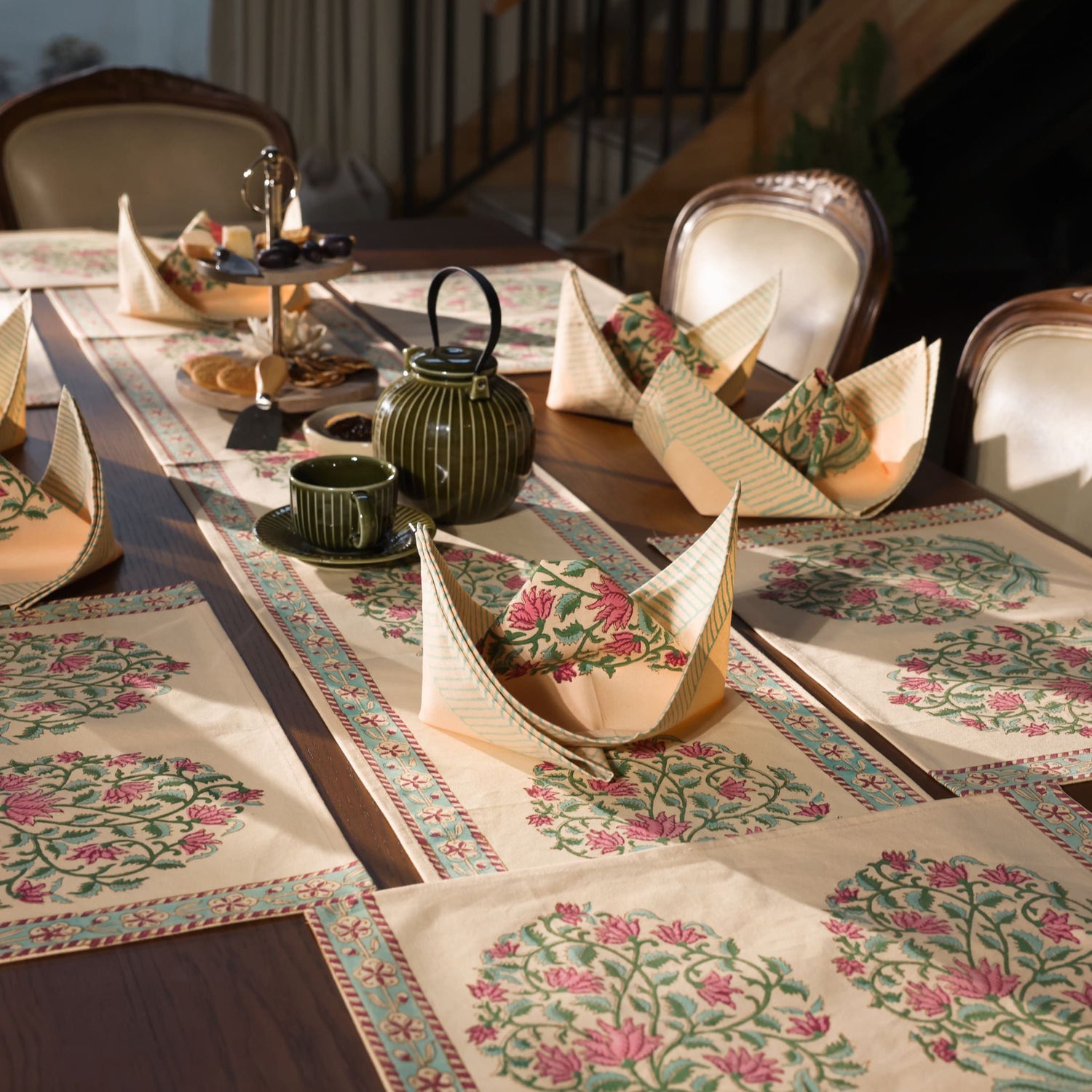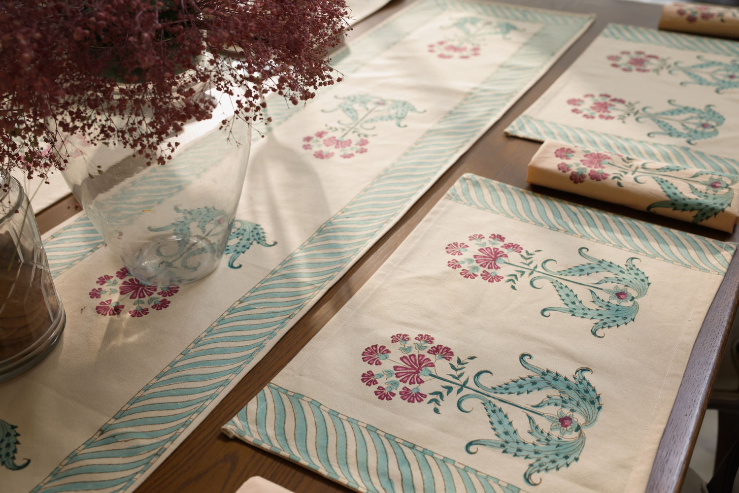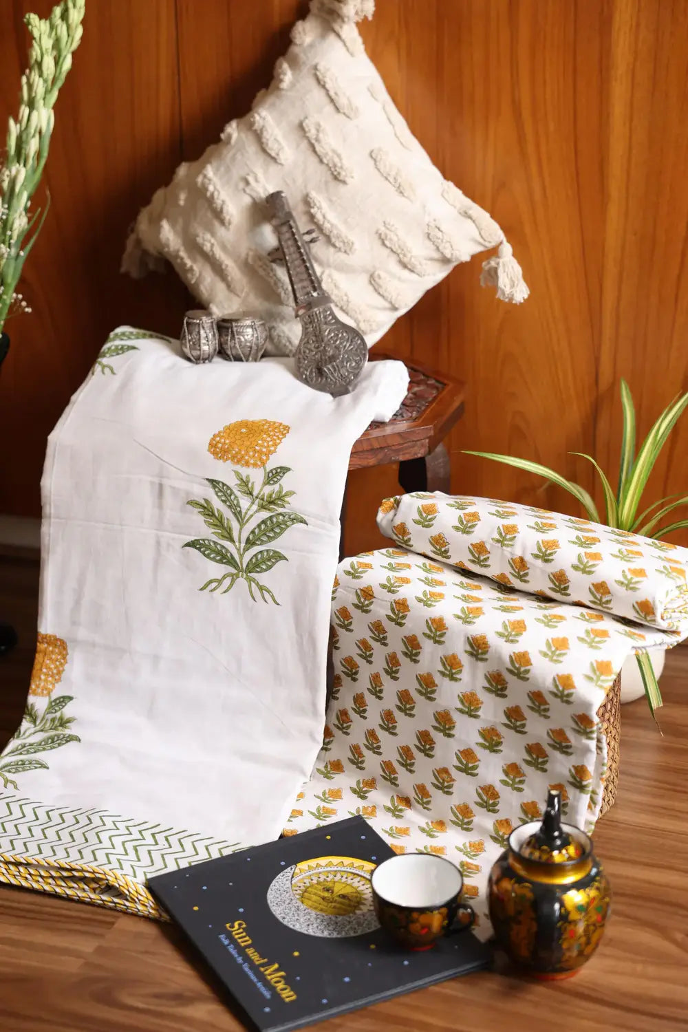 We invite you to explore our collection and discover the beauty of handmade, block-printed textiles. From luxurious bedsheets and cozy quilts to elegant table runners and plush towel sets, each product is designed to add a touch of Rajasthan's timeless elegance to your home.